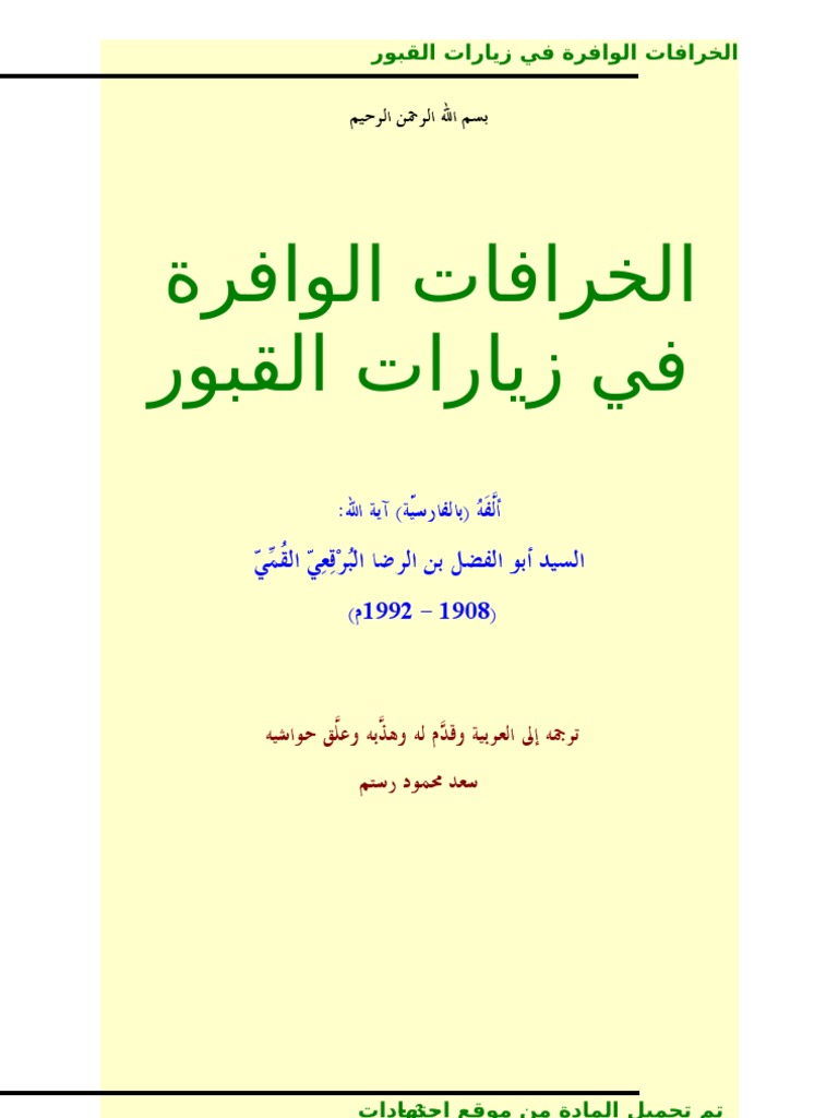 الخرافات الوافرة في زيارة القبور السيد أبو الفضل بن الرضا البرقعي القمي