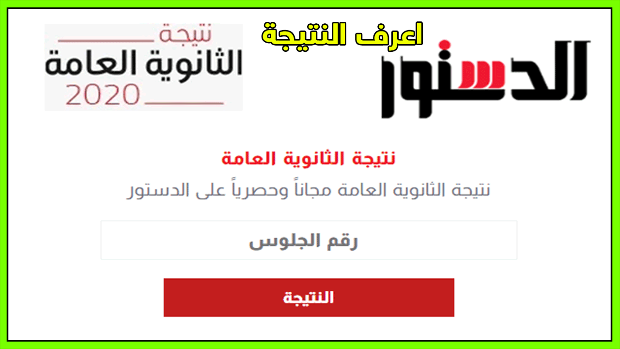 نتيجتك نتيجة الثانوية العامة برقم الجلوس ظهرت نتيجة الثانوية على الدستور