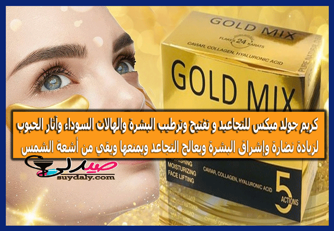 كريم جولد ميكس Gold Mix للتجاعيد والتفتيح والهالات السوداء وآثار الحبوب يزيد نضارة وإشراق البشرة ويجعلها رطبة بالكولاجين وجزيئات الذهب 24 قيراط فوائده واستخداماته والجرعة وبدائله وسعره في 2020